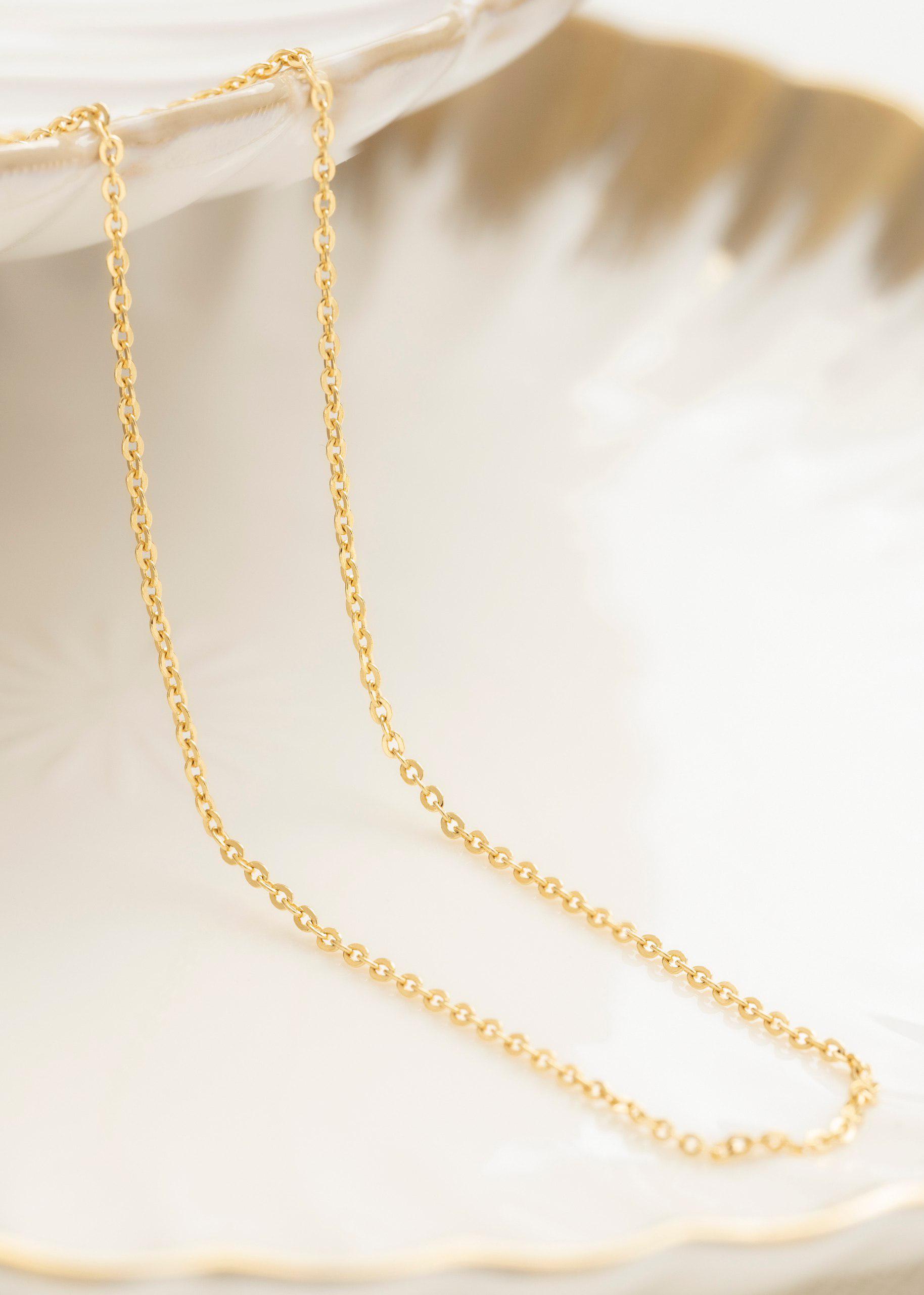 Hecha en oro laminado 18K, esta cadena de 45 cm es perfecta para destacar tu estilo con un toque moderno y atemporal.