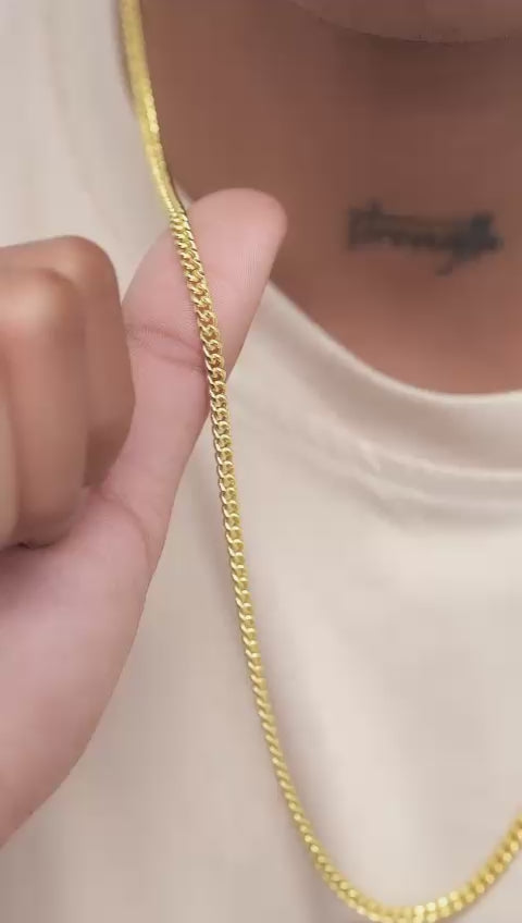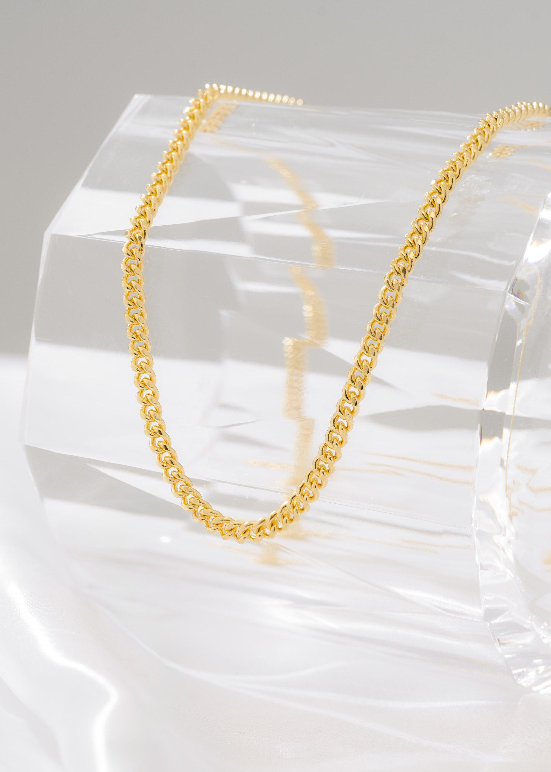 Con eslabones gruesos y robustos en forma de “U”, esta cadena Cubana de 65 cm en oro laminado 18K es el símbolo perfecto de poder y estilo masculino.