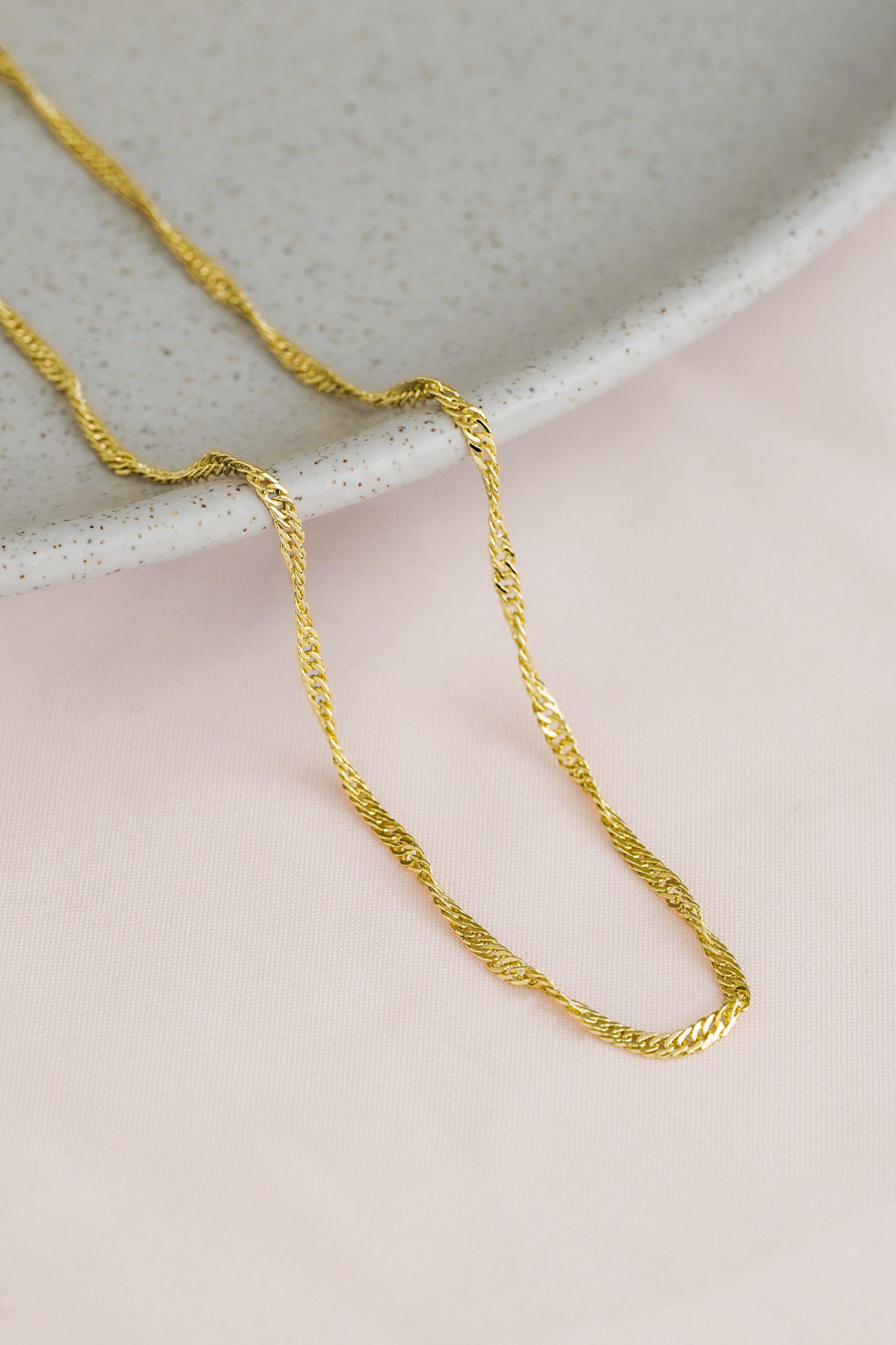 La cadena Singapur de 45 cm en oro laminado 18K es ideal para quienes aman los detalles finos y con estilo.
