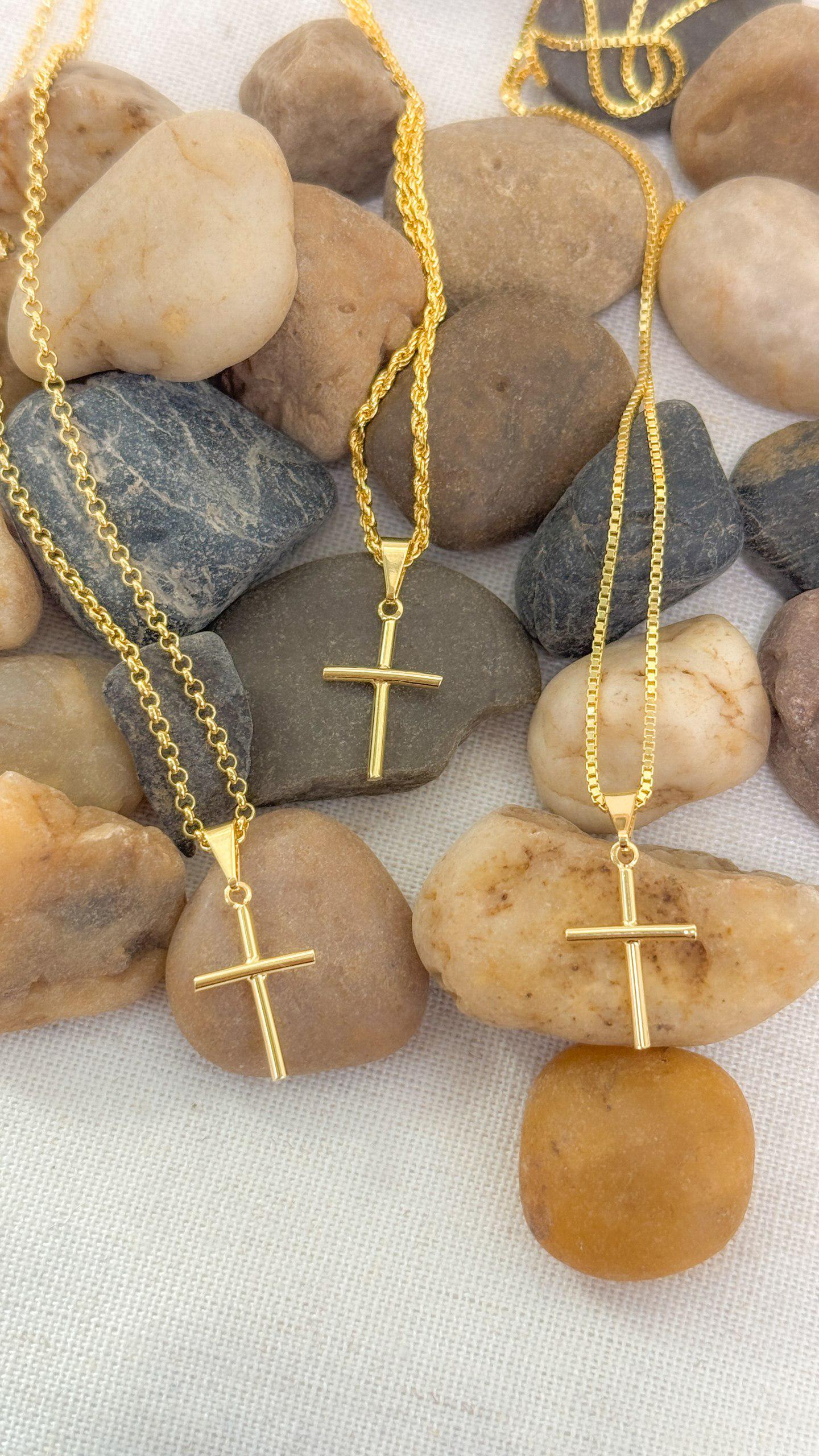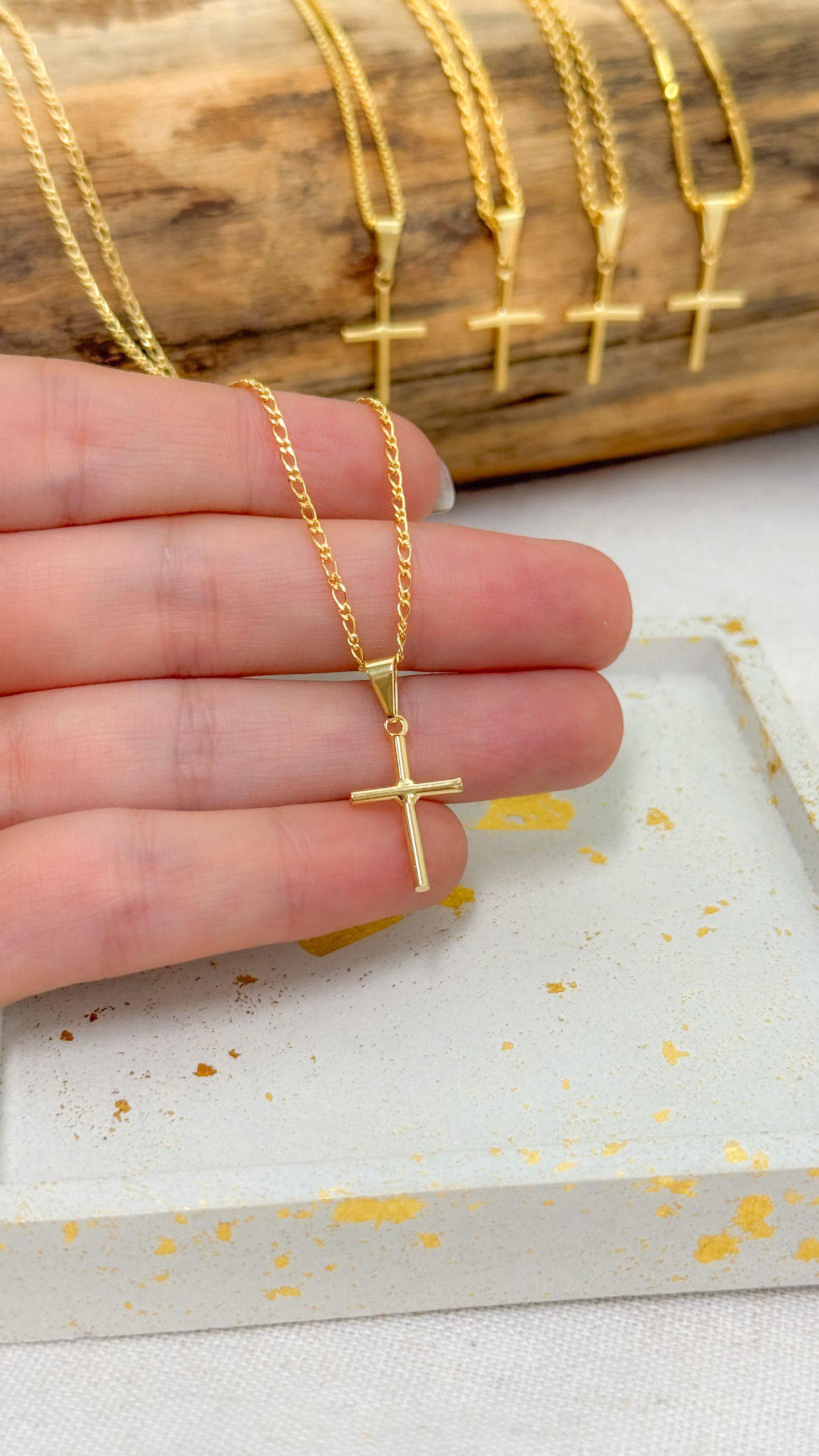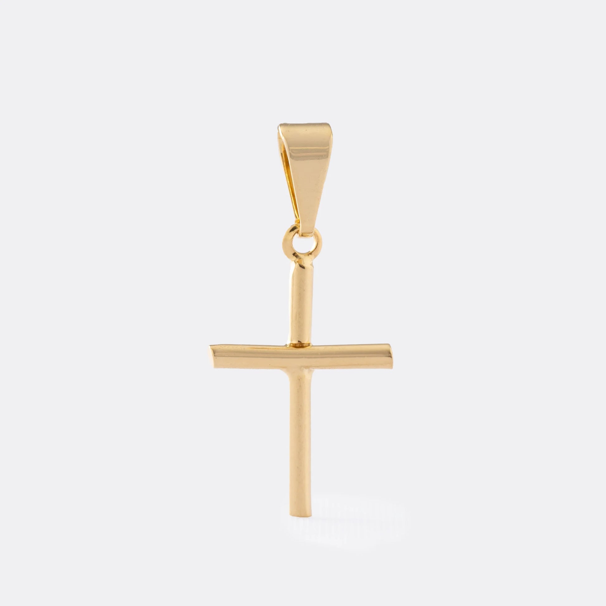 Un diseño limpio, elegante y atemporal. La cruz lisa en oro laminado 18K es perfecta para quienes prefieren expresar su espiritualidad con discreción y estilo.